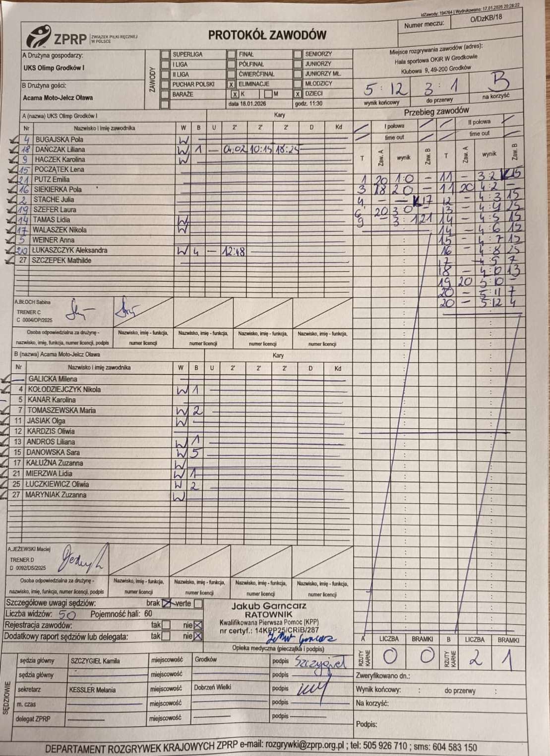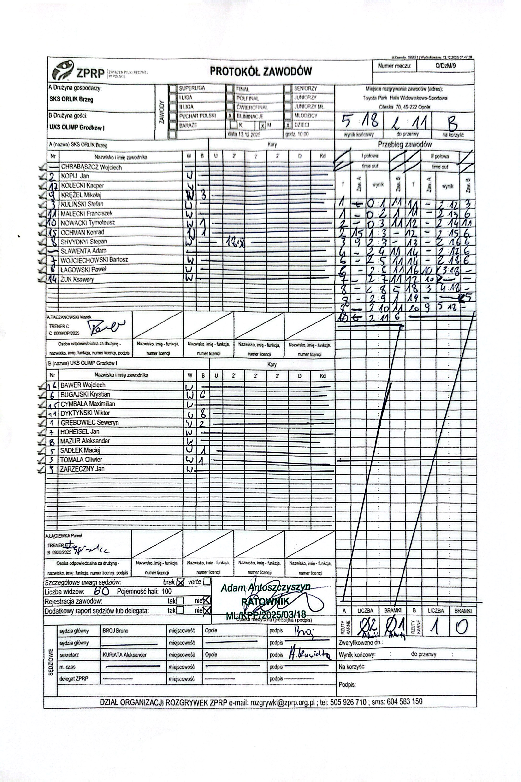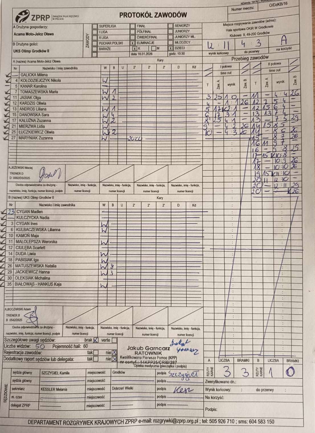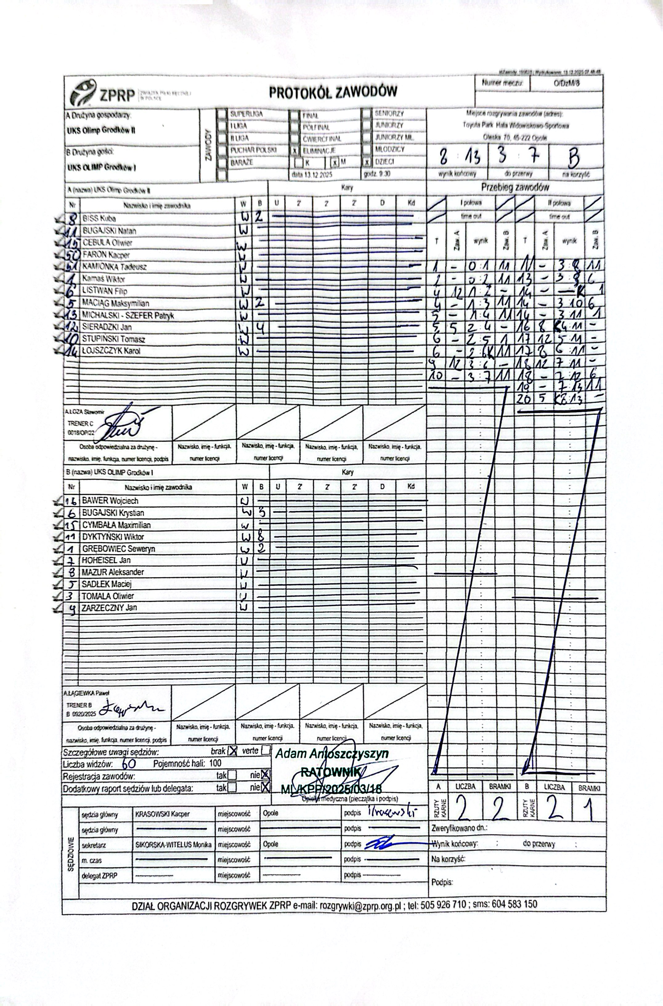 Wyniki i protokoły OLM pochodzą z bazy rozgrywek ZPRP Wykonanie Krzysztof Hyla