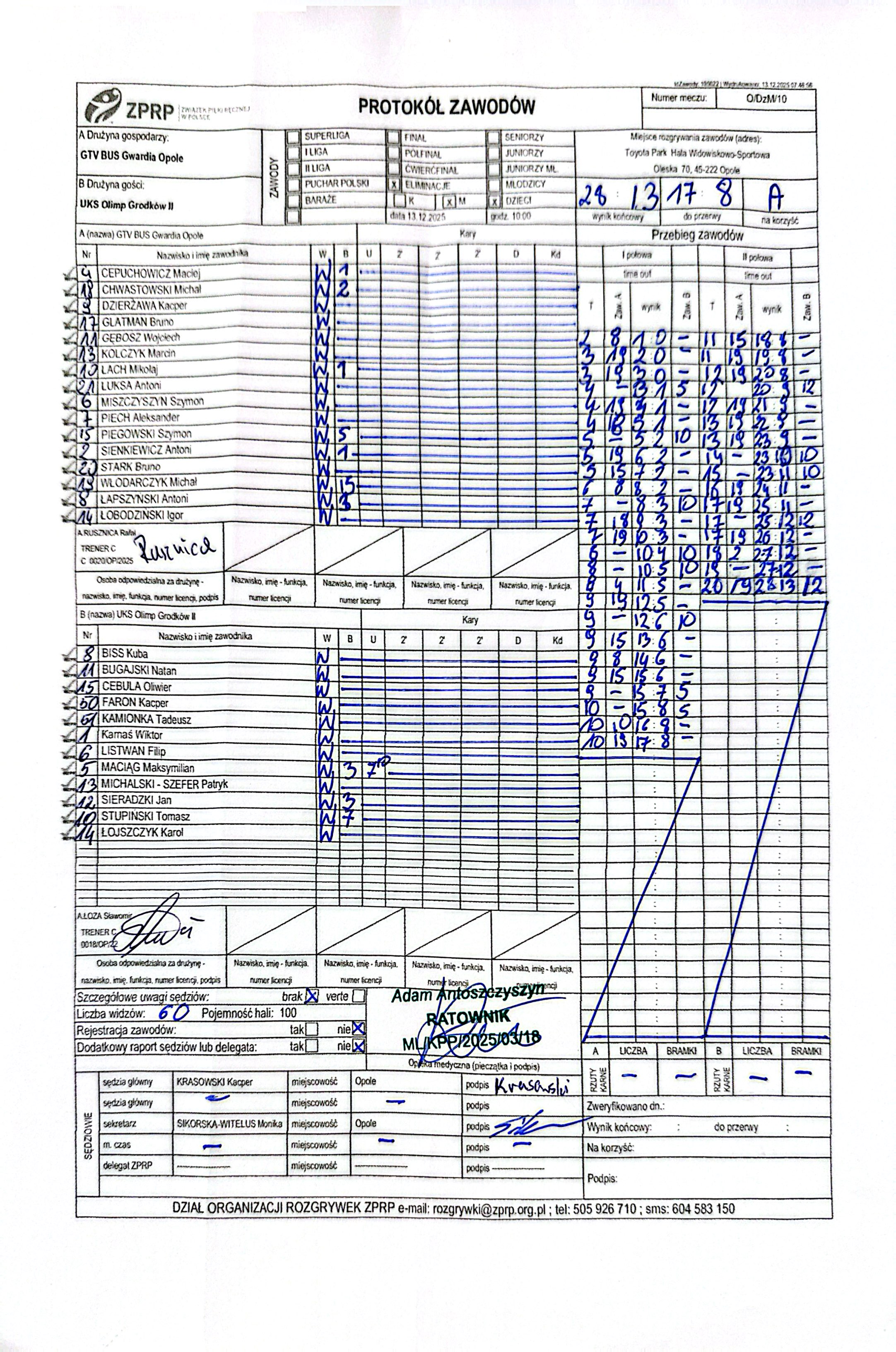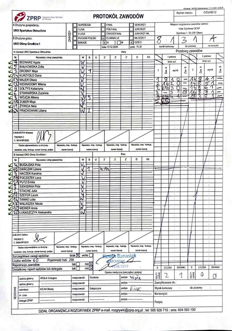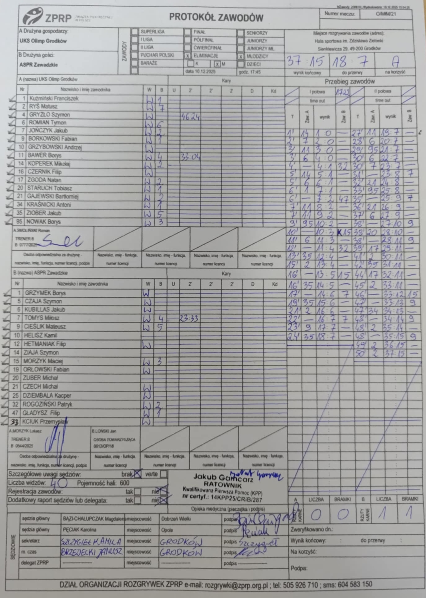 Wyniki i protokoły OLM pochodzą z bazy rozgrywek ZPRP Wykonanie Krzysztof Hyla
