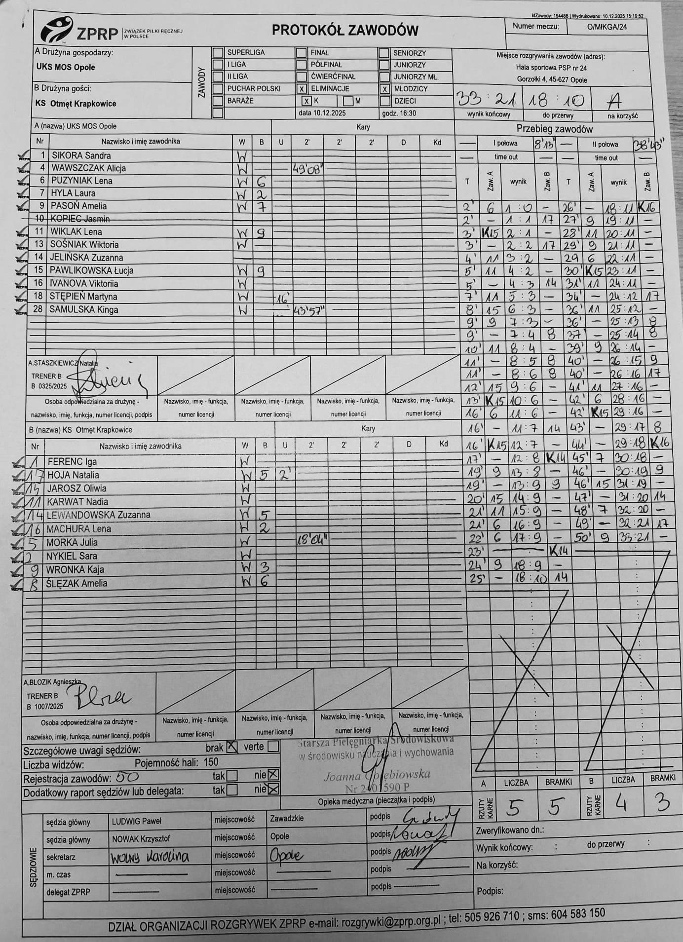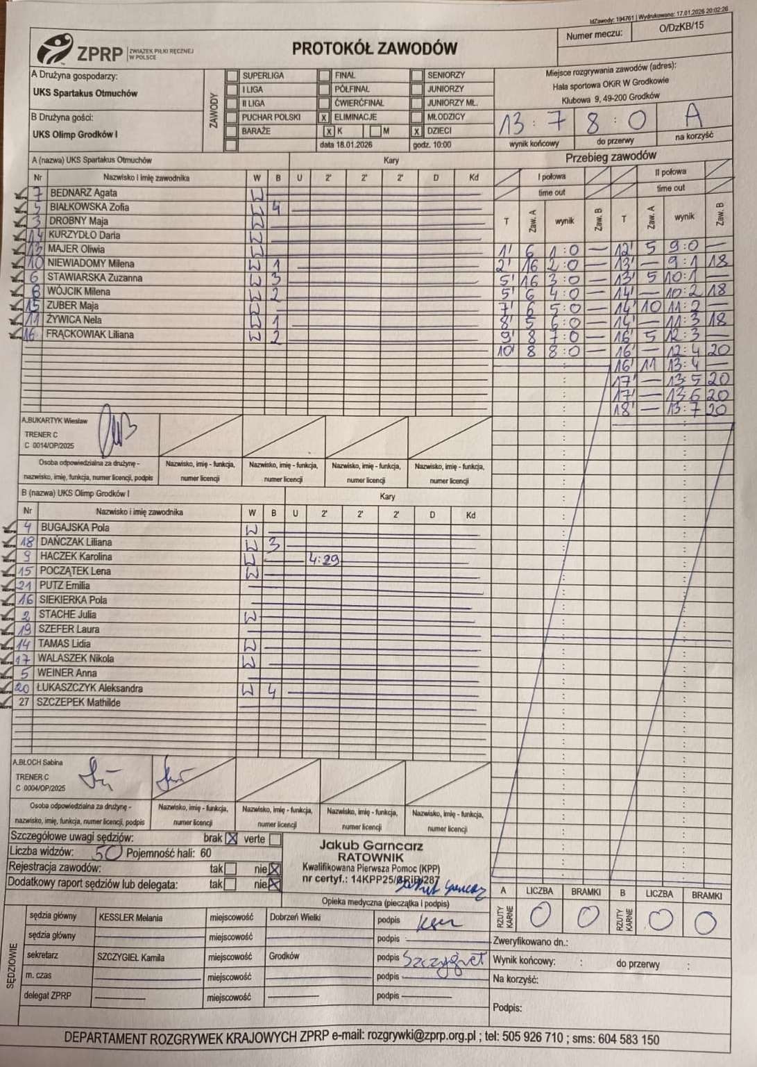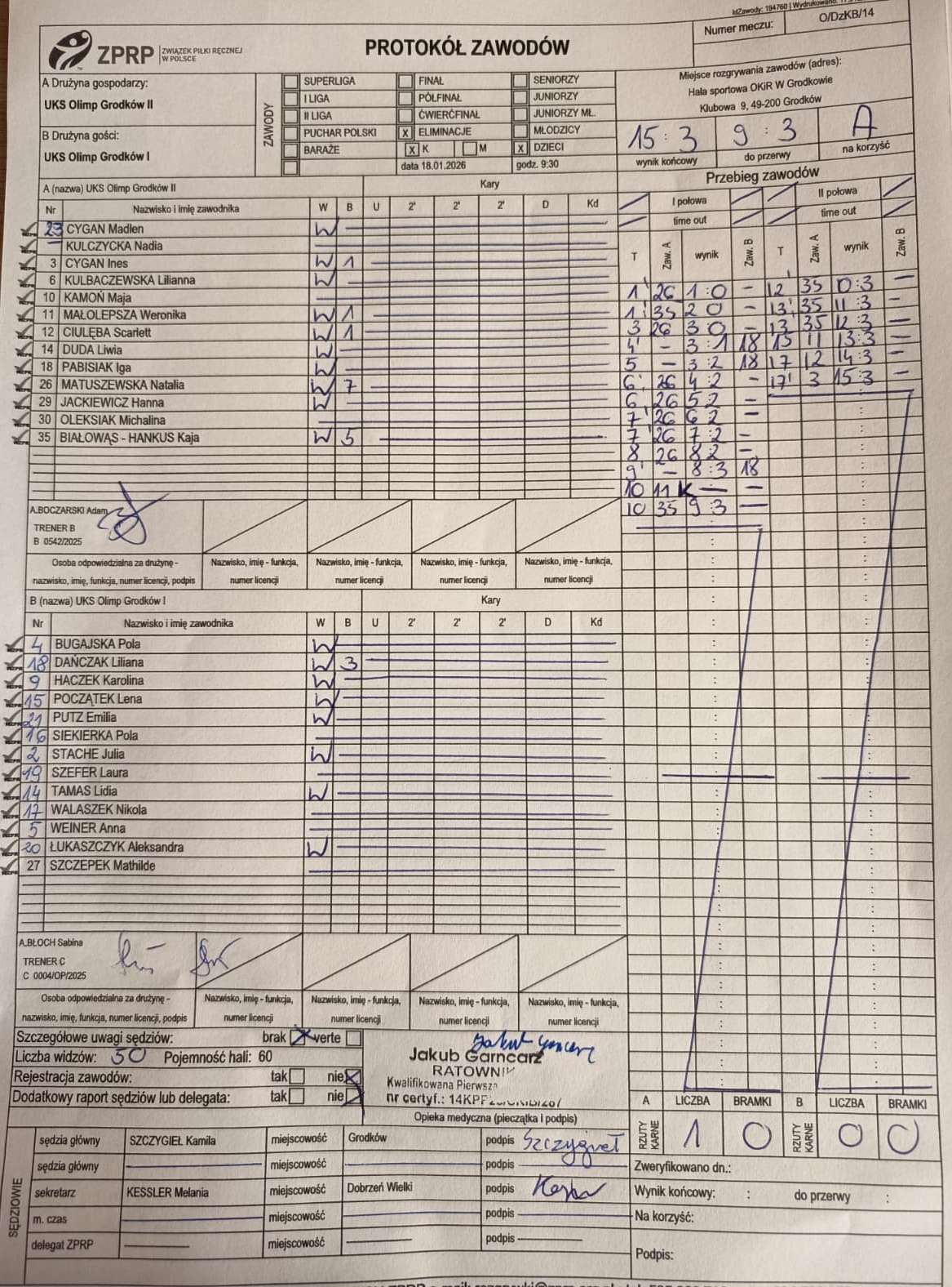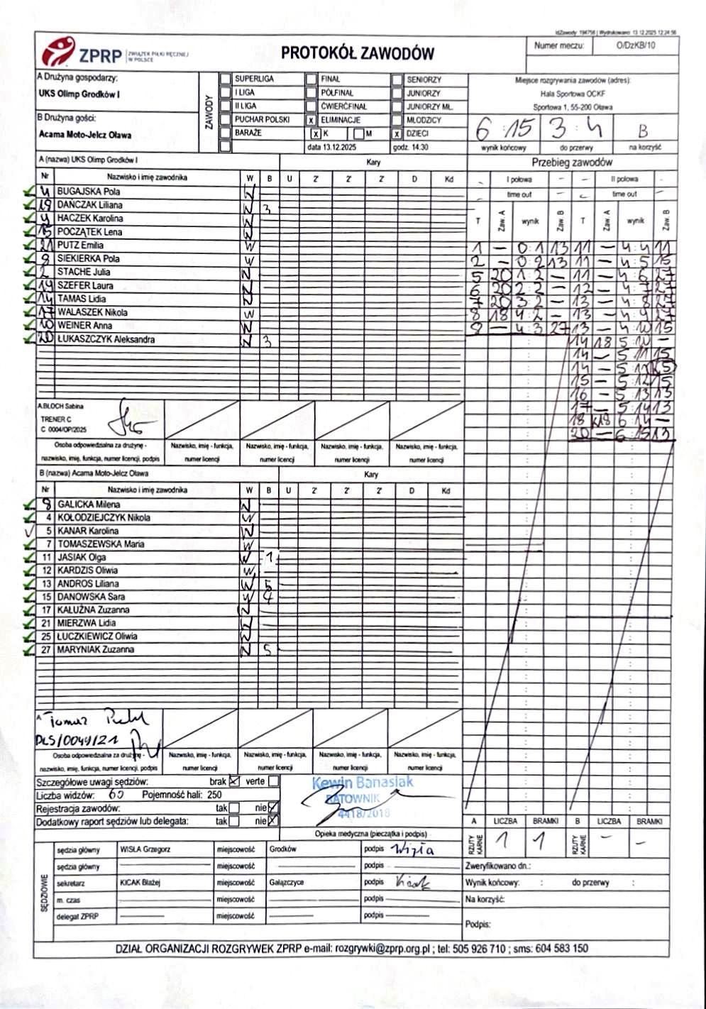 Wyniki i protokoły OLM pochodzą z bazy rozgrywek ZPRP Wykonanie Krzysztof Hyla