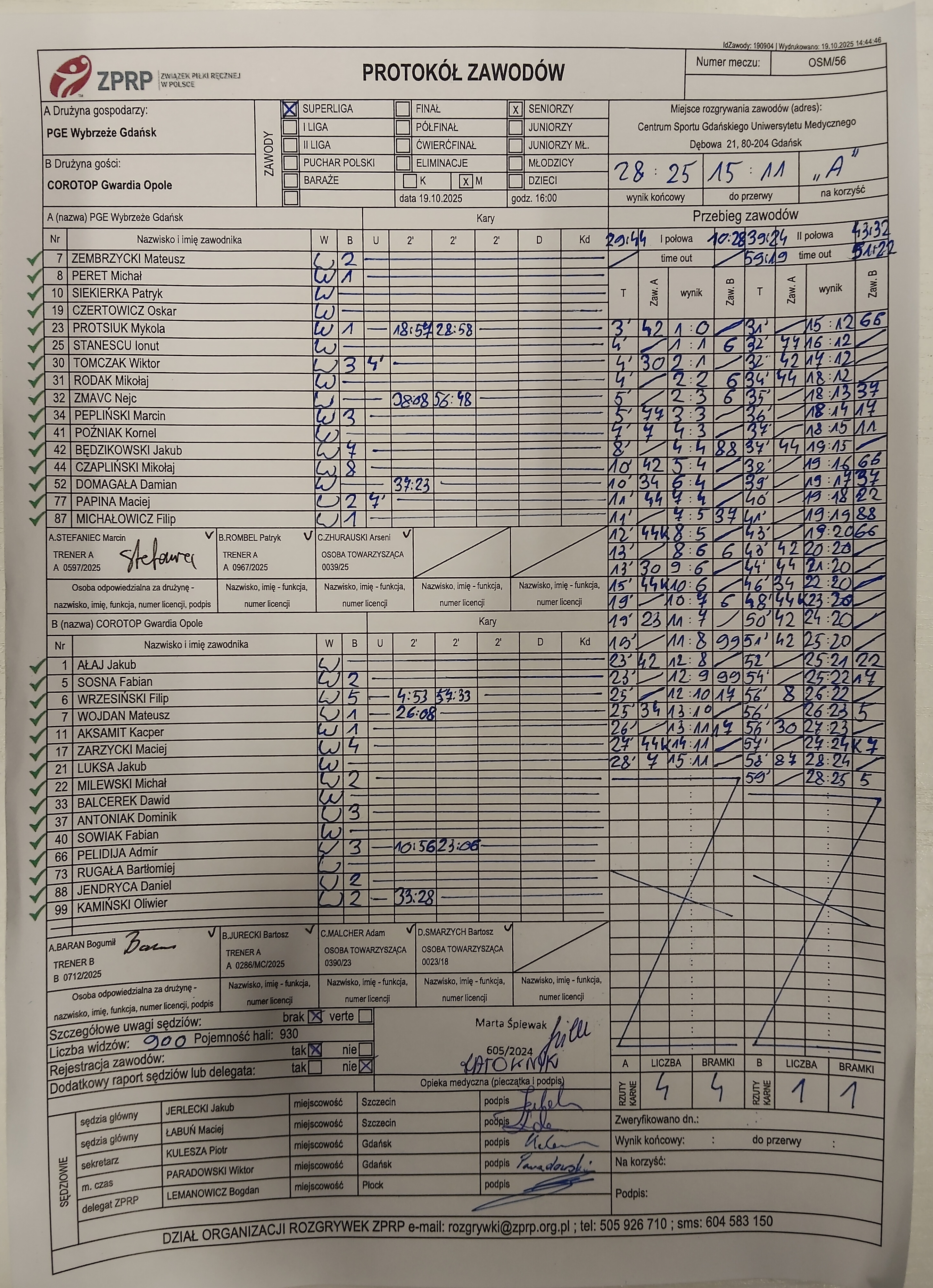 Tabela i strzelcy – COROTOP Gwardia Opole