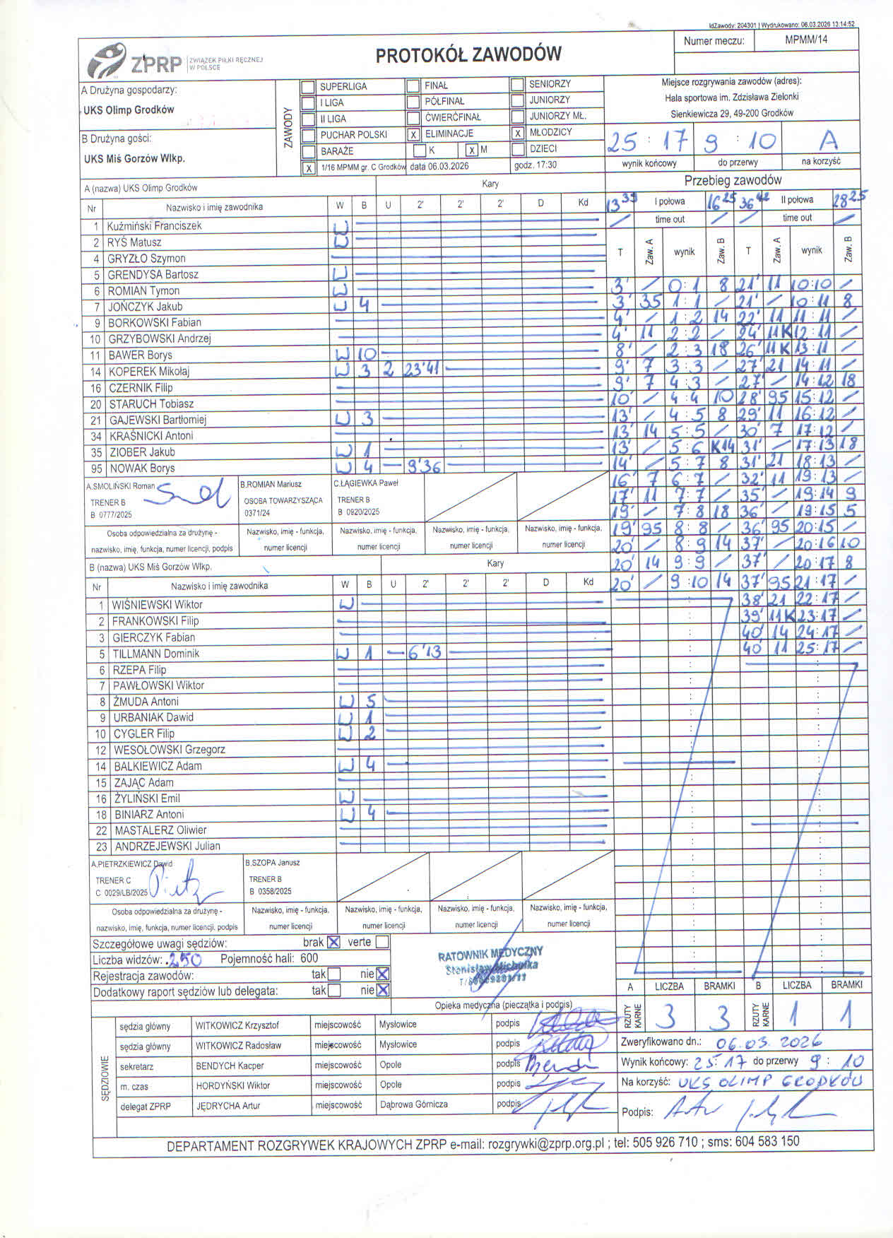 Rozkład meczy 1/16 finałów Mistrzostw Polski Młodzików grupa C Grodków