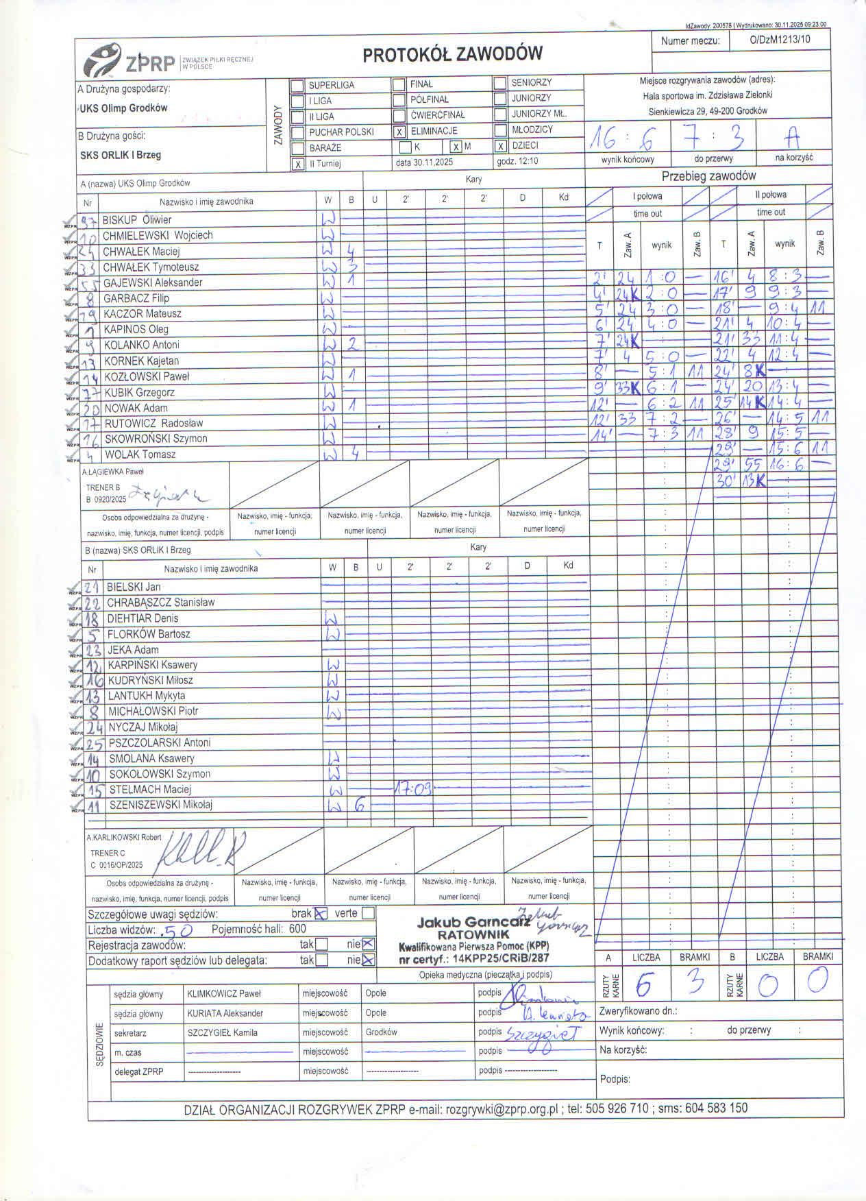 Antoni KOŁODZIEJCZYK | SKS ORLIK II Brzeg | 3 | 2 |