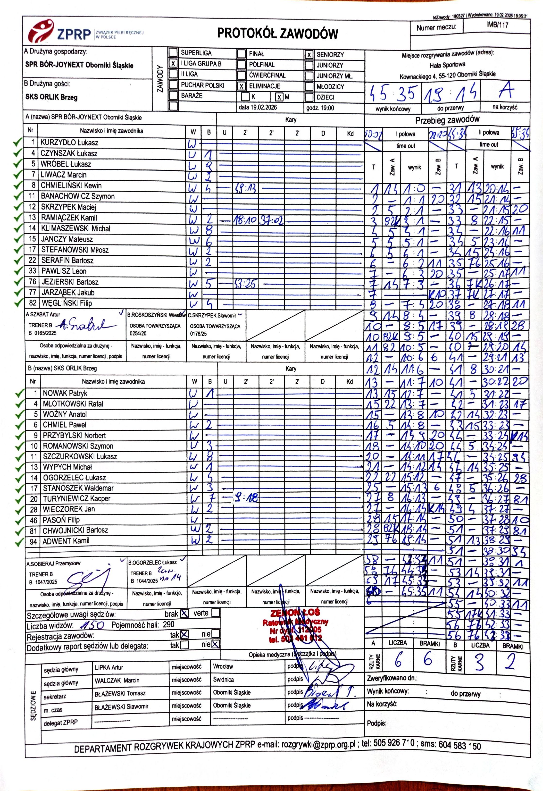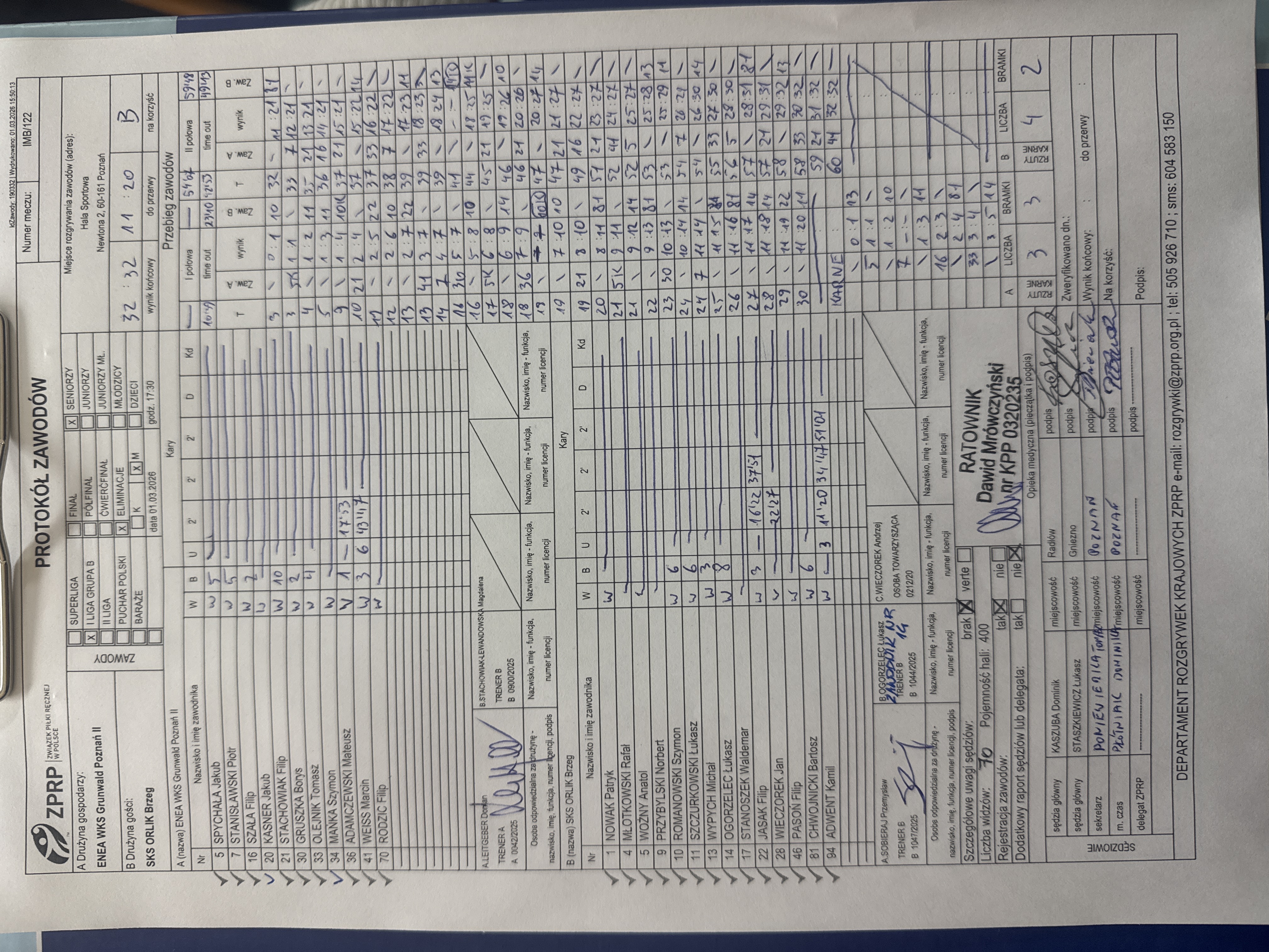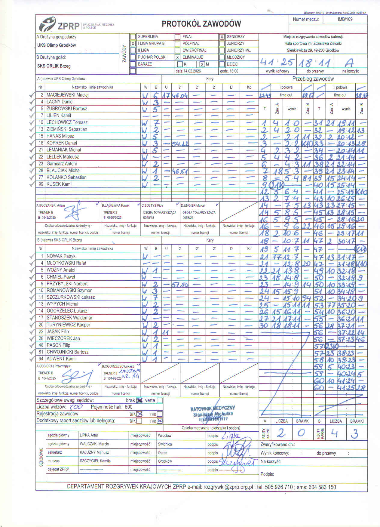 Mecze ligowe Orlik Brzeg do 2025 roku
